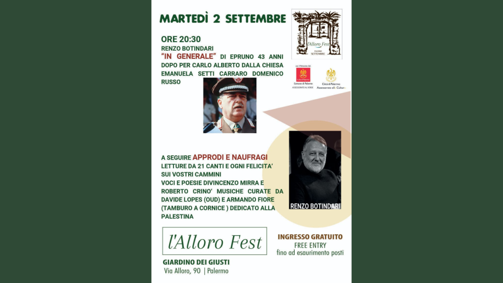 Palermo, L’Alloro Fest, Commemorazione del Prefetto Generale Carlo Alberto Dalla Chiesa con la partecipazione di Natalia Re